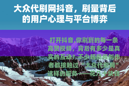 打开抖音,你刷到的每一条高赞视频,背后有多少是真实的互动?不少短视频创作者都接触过“大众代刷网”这样的服务——花几十块钱买几百个点赞、粉丝或播放量,让自己的视频看起来更“火”,这种灰色操作在抖音生态里持续存在,甚至催生了规模不小的产业链,但奇怪的是,一边是平台不断升级的算法检测,一边是用户依然前赴后继地找代刷,这中间到底发生了什么?
