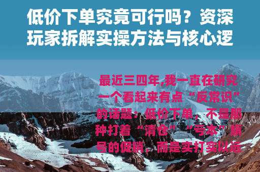 这篇文章里,我不会给你画大饼,也不会绕弯子,我会直接告诉你:低价下单到底靠什么运转,哪些渠道最靠谱,以及你操作时容易踩的“暗坑”长什么样,对了,我特意避开了那些公众号常用的吓人词汇,因为真正的门道不需要靠情绪来包装。