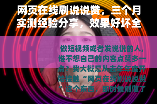 做短视频或者发说说的人,谁不想自己的内容点赞多一点?我大概是从去年年底开始接触“网页在线刷说说赞”这个东西,那时候刚做了一个小号,发了几条日常,每条就那么几个赞,看着实在寒酸,朋友跟我说,网上有那种直接刷赞的网页,不用下载软件,打开浏览器就能操作,很方便,我当时半信半疑,但好奇心加上一点急功近利的心态,让我一头扎了进去,前前后后试了十几个网站,花了几百块钱,踩了不少坑,也总结出一些实在的东西,今天就把我这些经历写下来,希望对那些也想试试的朋友有点帮助。