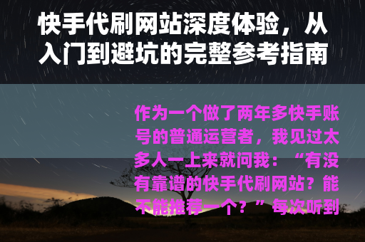 快手代刷网站深度体验,从入门到避坑的完整参考指南