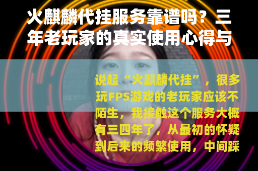说起“火麒麟代挂”,很多玩FPS游戏的老玩家应该不陌生,我接触这个服务大概有三四年了,从最初的怀疑到后来的频繁使用,中间踩过不少坑,也总结出一些实实在在的经验,今天就把这些年的体会写出来,给同样考虑代挂的朋友做个参考,全是个人感受,不吹不黑。