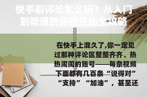 在快手上混久了,你一定见过那种评论区整整齐齐、热热闹闹的账号——每条视频下面都有几百条“说得对”“支持”“加油”,甚至还会出现一排排一模一样的话,很多人第一反应是:“这肯定是刷的。”但刷评论到底是怎么回事?它真的管用吗?我做快手运营三年多,手底下管着十几个账号,从几万粉丝的小号到百万级的大号都跑过,今天就把这碗饭掰开了讲讲,不整那些虚头巴脑的理论,就说说实操中我踩过的坑、试出来的路。