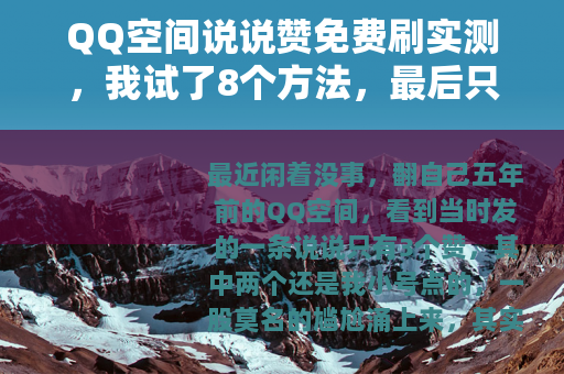 最近闲着没事,翻自己五年前的QQ空间,看到当时发的一条说说只有3个赞,其中两个还是我小号点的,一股莫名的尴尬涌上来,其实很多人跟我一样,发完说说没人点赞,就像对着空气说话,于是我开始琢磨——那些号称“QQ空间说说赞免费刷”的东西,到底能不能用?好用吗?会出问题吗?