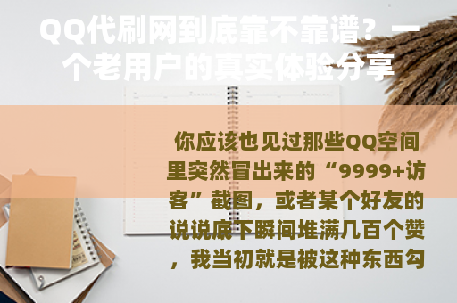 QQ代刷网到底靠不靠谱?一个老用户的真实体验分享
