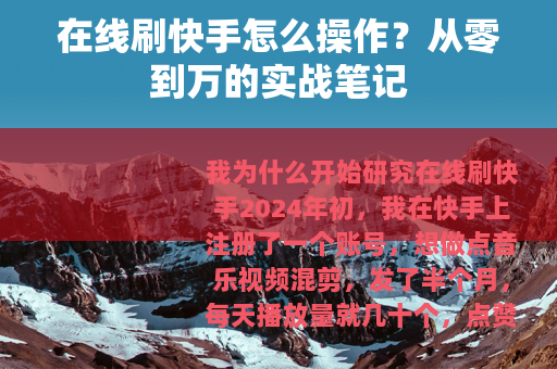 2024年初,我在快手上注册了一个账号,想做点音乐视频混剪,发了半个月,每天播放量就几十个,点赞个位数,朋友说“内容为王”,可我内容确实不差——剪辑节奏、字幕、封面都花了心思,后来一个做运营的老乡点醒我:“平台给你初始流量,但凌晨三点发和晚上八点发,系统推的池子不一样,而且你没基础数据,谁愿意点进来?”