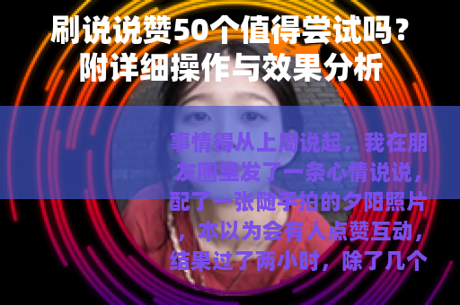 带着这个疑问,我在网上搜了搜“说说赞”“空间点赞”之类的关键词,出来的结果五花八门,一些论坛里有人提到可以“刷赞”,价格也不贵,几十块钱就能搞到几十上百个赞,我原本觉得这种操作有点虚,但转念一想,现在的社交平台不就是靠数据撑门面嘛?点赞多、评论多,内容就会被推荐给更多人,自然流量也能跟着起来,于是我决定亲自试一次,选了个最入门的小单——刷说说赞50个,看看效果到底怎么样。