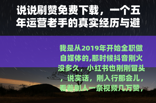 我希望我这篇3000多字的亲身经历,能让你对“刷赞免费下载”有一个清醒的认识,不是所有免费的东西都值得拿,免费的背后藏着最贵的代价,如果你看到了这里,不妨把搜索关键词换成“内容怎么提升”“视频开头怎么写”,你会发现,另一条路走起来虽然累,但风景更好。