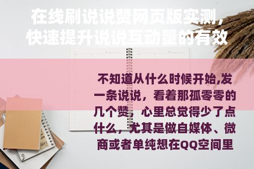 在线刷说说赞网页版实测,快速提升说说互动量的有效方法