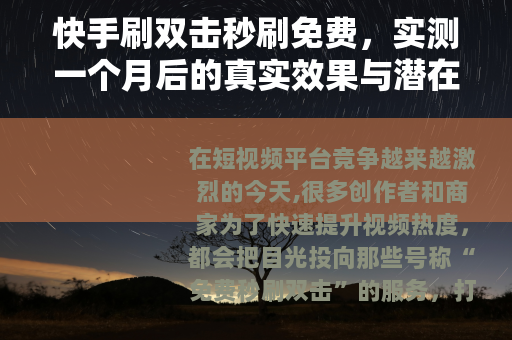 在短视频平台竞争越来越激烈的今天,很多创作者和商家为了快速提升视频热度,都会把目光投向那些号称“免费秒刷双击”的服务,打开任何一个社交平台或搜索引擎,输入“快手刷双击秒刷免费”,跳出来的链接和广告铺天盖地,几乎都在承诺“零成本、立竿见影、不限次数”,但这些服务真的像宣传中说的那样可靠吗?我抱着试试看的心态,花了一个月时间,在多个渠道随机测试了十几个号称“免费秒刷”的工具和网站,并记录下每一个步骤的细节,今天我把这三十天的真实经历和观察到的问题全部写出来,不夸张、不渲染,只讲实际发生的事,希望能给正在犹豫要不要尝试的你一些参考。