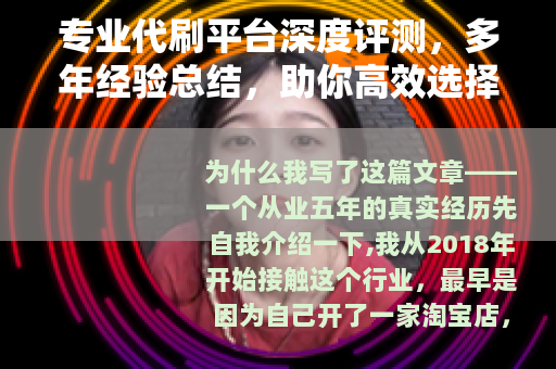 先自我介绍一下,我从2018年开始接触这个行业,最早是因为自己开了一家淘宝店,为了冲销量不得不找代刷,那时候市面上鱼龙混杂,我被坑了不下六次——有的平台收了钱就跑路,有的刷完第二天订单全被淘宝清空,还有的把我店铺账号直接搞封了,后来我自己摸透了门道,开始帮朋友操作,慢慢就做成了一个副业,甚至自己搭建过几个小平台,到现在,我见过的代刷平台少说也有两三百个,踩过的坑、见过的套路、真正靠谱的渠道,都能说上一些。
