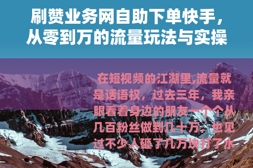 在短视频的江湖里,流量就是话语权,过去三年,我亲眼看着身边的朋友一个个从几百粉丝做到几十万,也见过不少人砸了几万块打了水漂,今天我想和你聊聊一个绕不开的话题——那些提供快手刷赞服务的自助下单平台,到底怎么用、值不值、背后有哪些门道,这篇文章不会教你走捷径,但会让你看懂这条产业链的真实逻辑。
