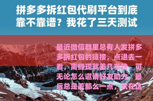 拼多多拆红包代刷平台到底靠不靠谱?我花了三天测试,结果出乎意料