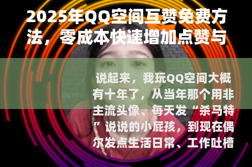 说起来,我玩QQ空间大概有十年了,从当年那个用非主流头像、每天发“杀马特”说说的小屁孩,到现在偶尔发点生活日常、工作吐槽的成年人,空间一直是我记录生活的地方,但不知道从什么时候开始,我发现自己的说说越来越没人看了,发一条精心拍的照片,配上一段走心的文字,结果右下角就两三个赞,还都是自己点的手,那种感觉,就像你在舞台上卖力表演,结果台下只有两个观众,其中一个还是你妈。
