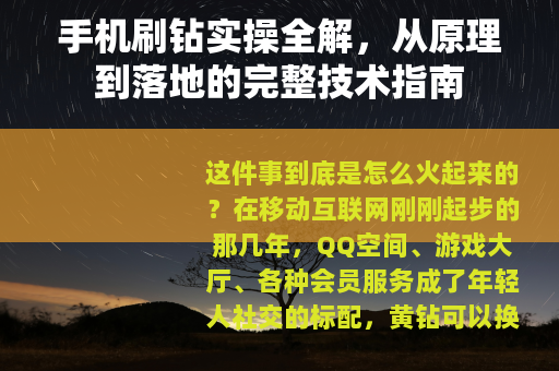 你现在去百度搜索“手机刷钻”,排在前面的文章要么是广告,要么是教你下载某个“刷钻软件”——这些软件几乎全是病毒或木马,真正能用的技术,不会大张旗鼓地公开,因为一旦公开就意味着漏洞很快被修复,那些号称“永久有效”的教程,可以直接无视。