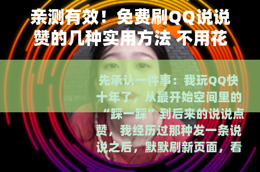 但问题是,没钱的我,不想花钱买那些所谓的“秒赞”服务,市面上那些动不动就让你充几十块的平台,谁知道靠不靠谱?而且一旦绑定手机号或者扫码,搞不好号就没了,所以我花了将近两个月时间,四处打听、亲自测试,找到了几种真正能免费给QQ说说刷赞的方法,今天毫无保留地写出来,希望对你有帮助。